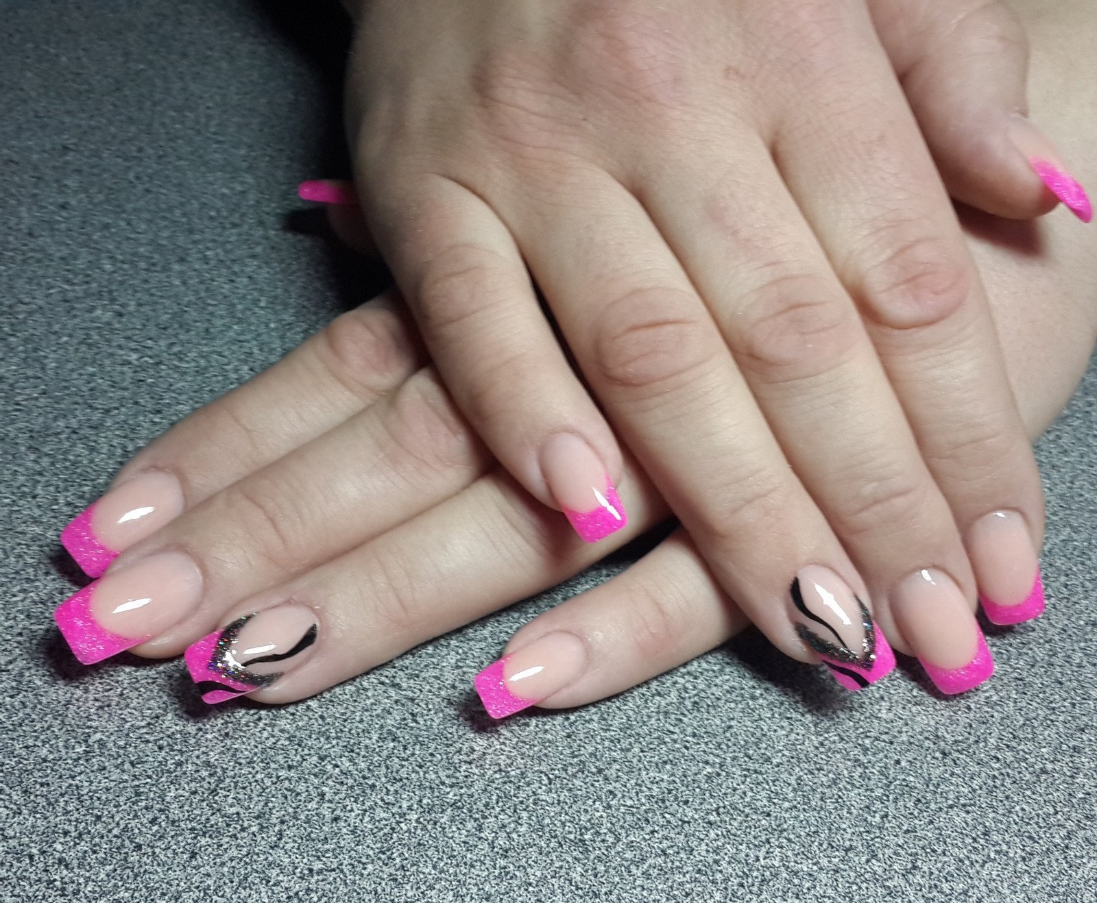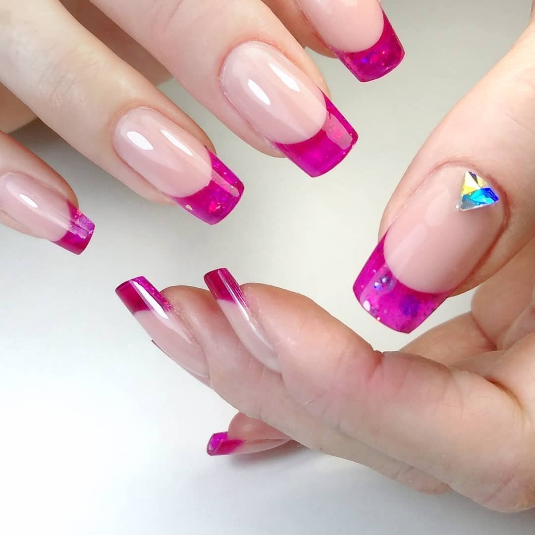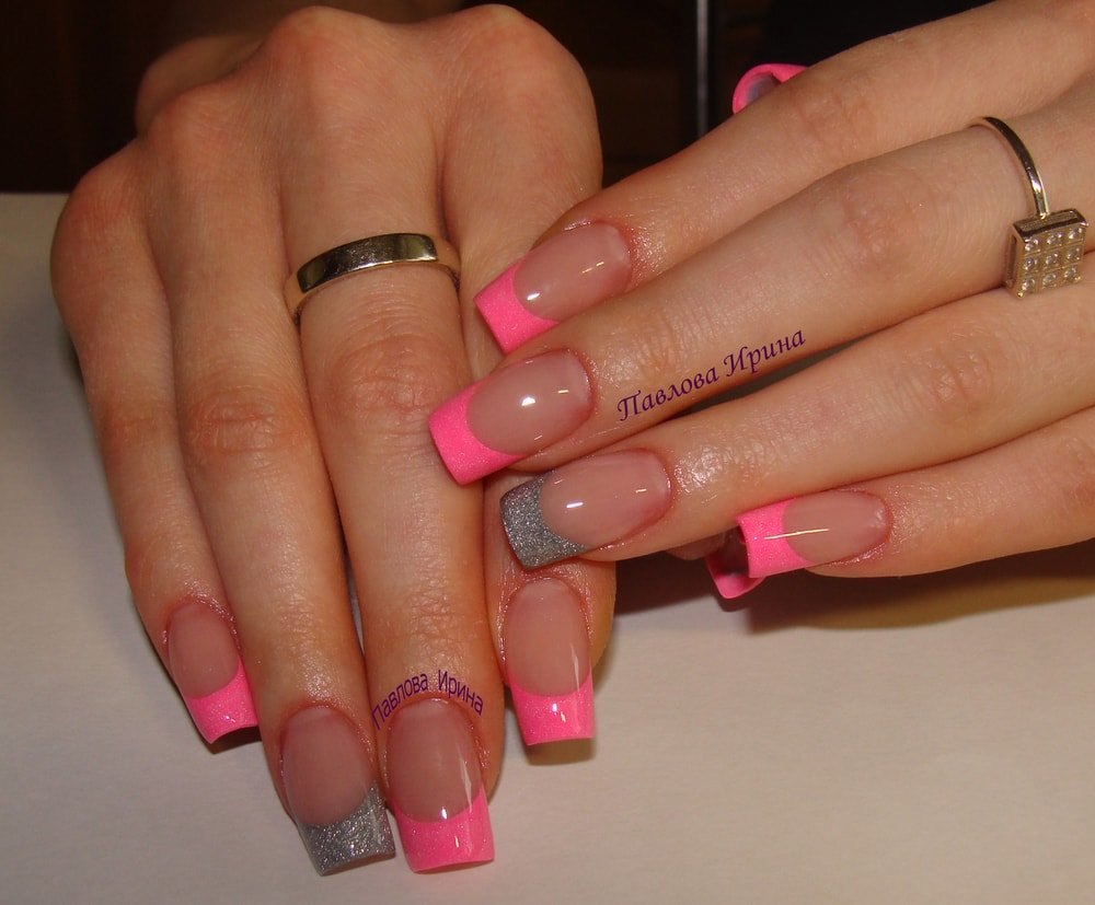 Розовый френч на ногтях квадратной формы