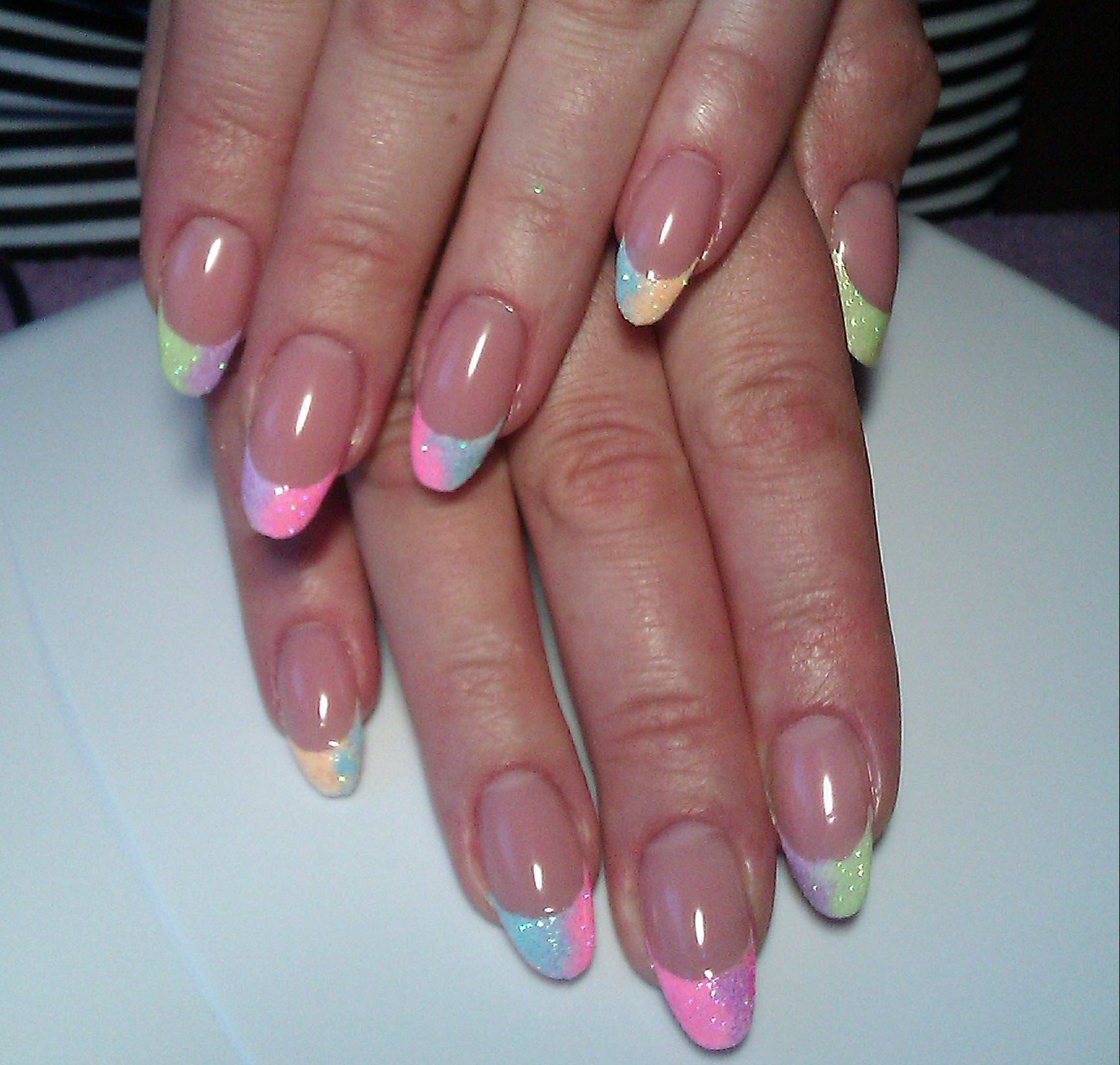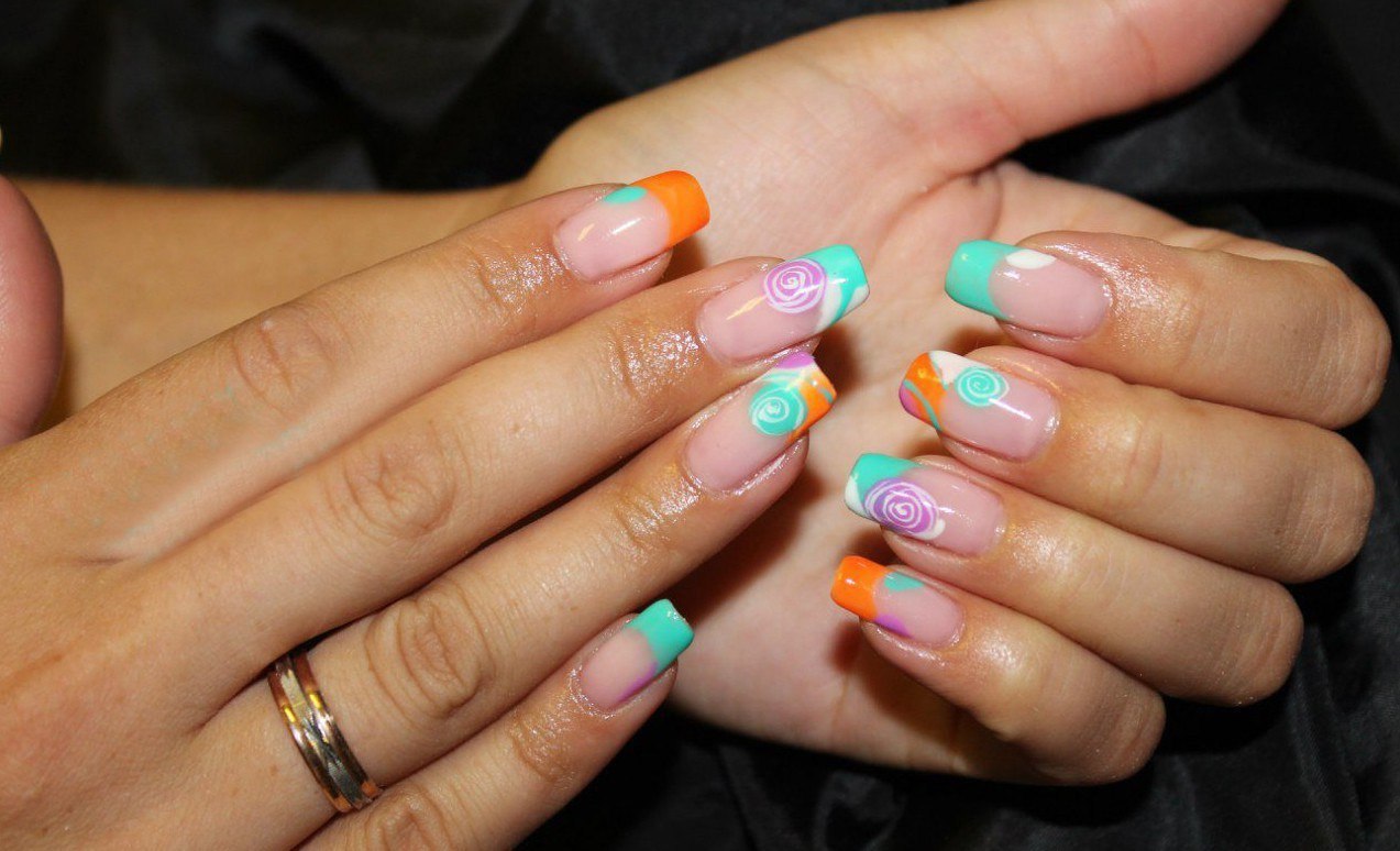 Наращивание ногтей френч цветной